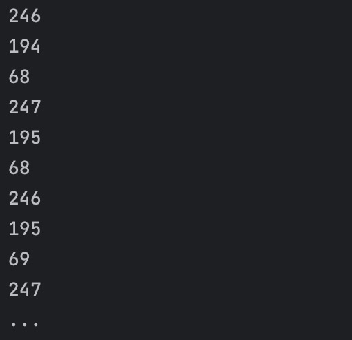 The data in an image file is just a list of numbers, such as these. These numbers fully encapsulate the information content of the image but in a much less accessible format. You might be able to study the numbers in an image file long enough to get a sense of what kind of image it captures, but it would be tedious, difficult, and slow.