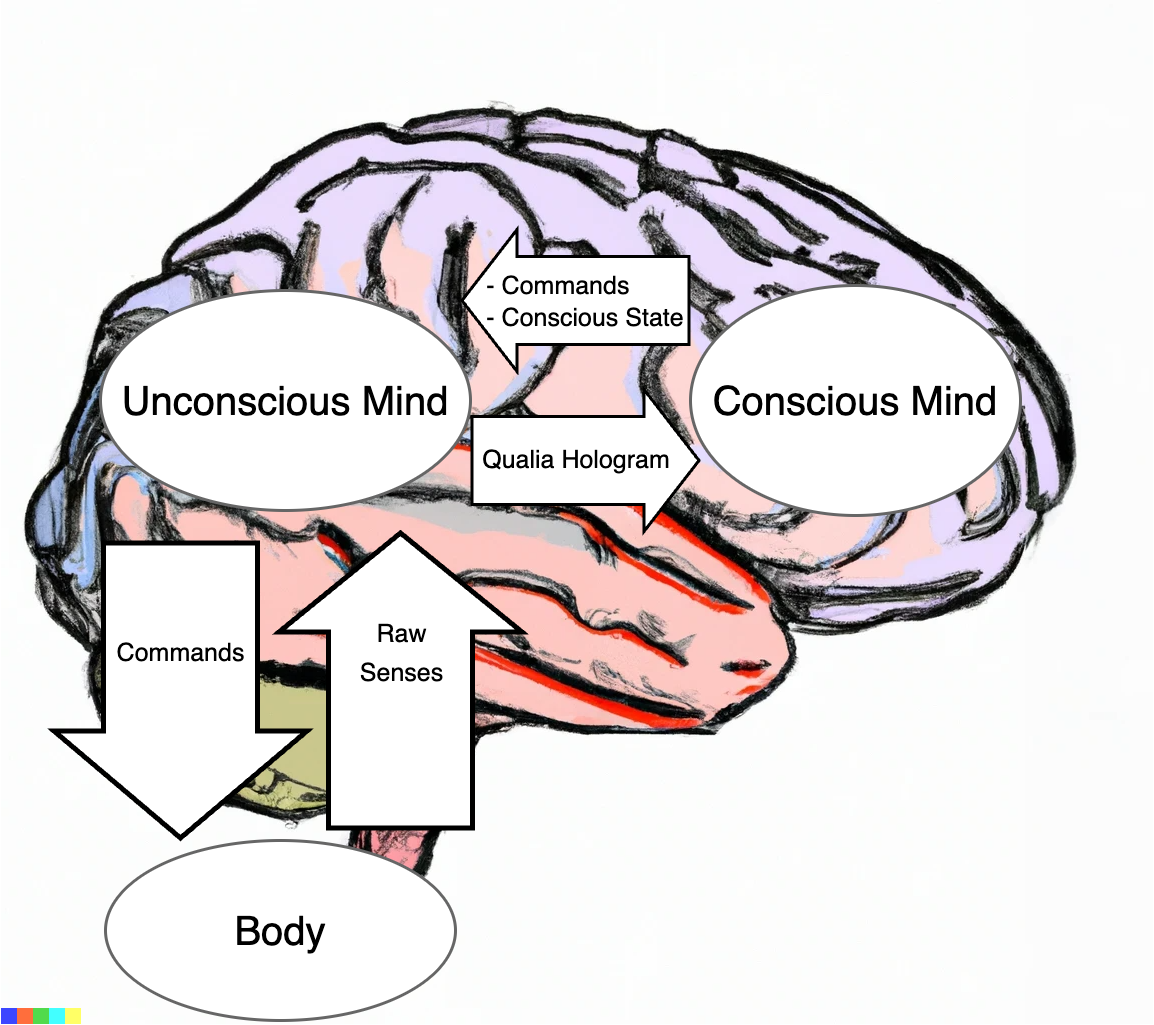 The unconscious mind has several roles, the first of which is to construct a qualia hologram by using an embedding space to project raw sense data. This data structure encodes all of our subjective knowledge about the state of the world, including ourselves. The use of an embedding space makes it so that any piece of data we add to this model can automatically be related to any and every other piece of data in the model.