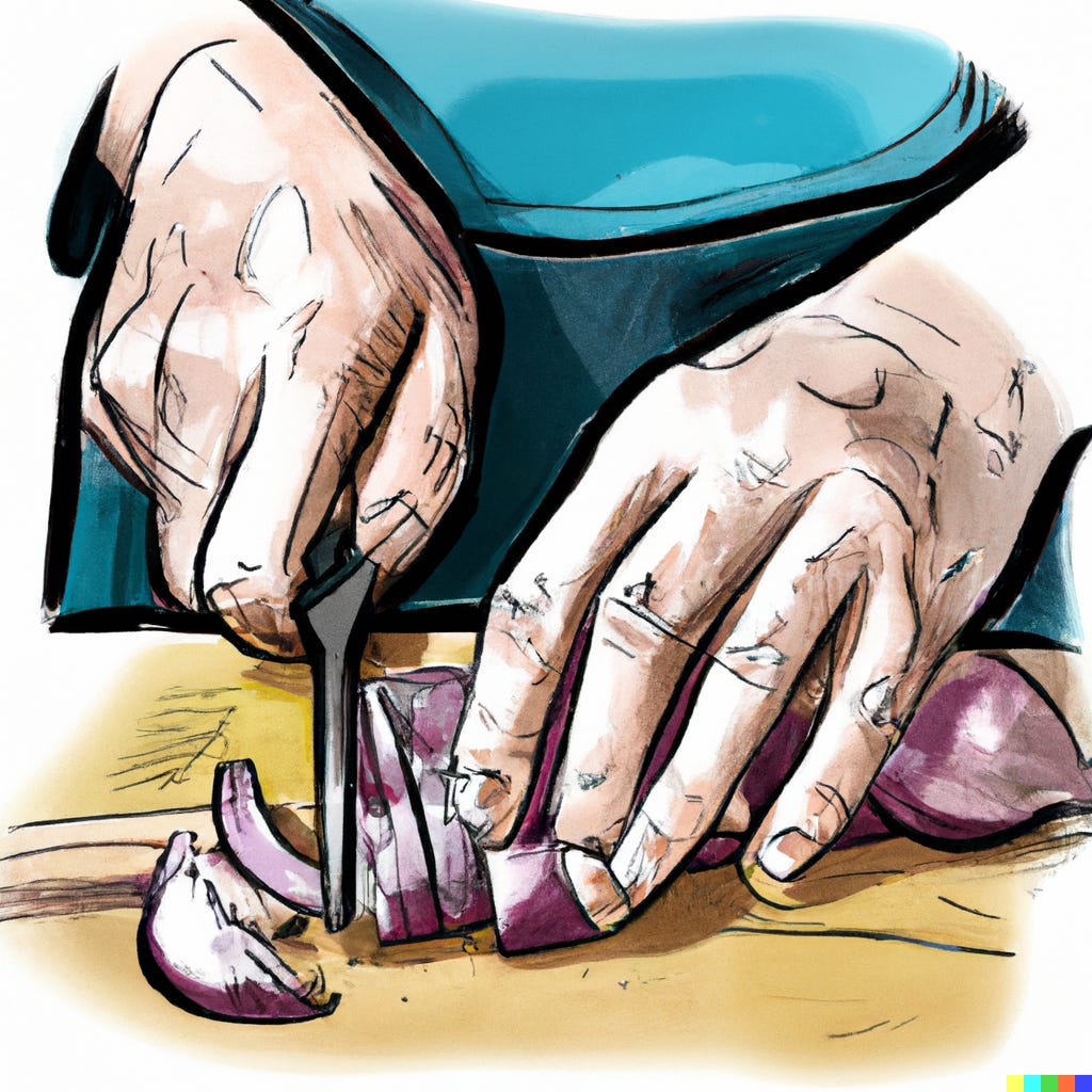 When it comes time to actually cook the meal, I am back to following a mostly predefined sequence of operations. When I read that I need to chop the onions, I can use embeddings to envision a plan in my mind where I hold an onion with one hand and cut it with a knife using the other. This plan is communicated back down to my unconscious mind, which figures out the right sequence of motor operations to carry it out.
