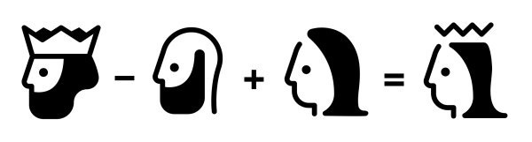Embedding spaces have many interesting properties. Relationships between vectors in an embedding space are self-consistent in a way that makes a form of conceptual arithmetic possible. For example, I can use an embedding space to convert words into vectors. If I convert the words for "man", "woman", and "king" into these embedded vectors, I can fairly reliably find the vector for "queen" by taking the embedding vector for “king”, subtracting “man” from it, and then adding “woman”.